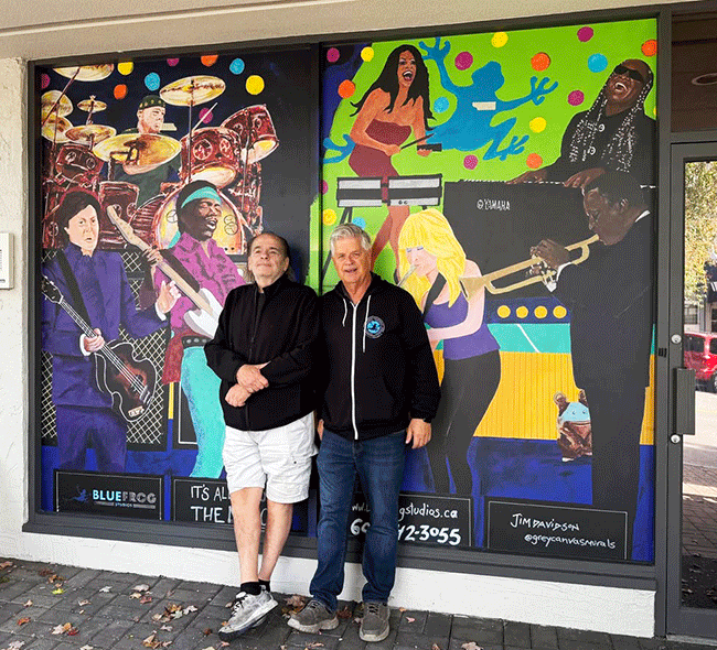 A huge thanks to White Rock artist Jim Davidson for bringing his creative magic to the front windows of Blue Frog Studios!