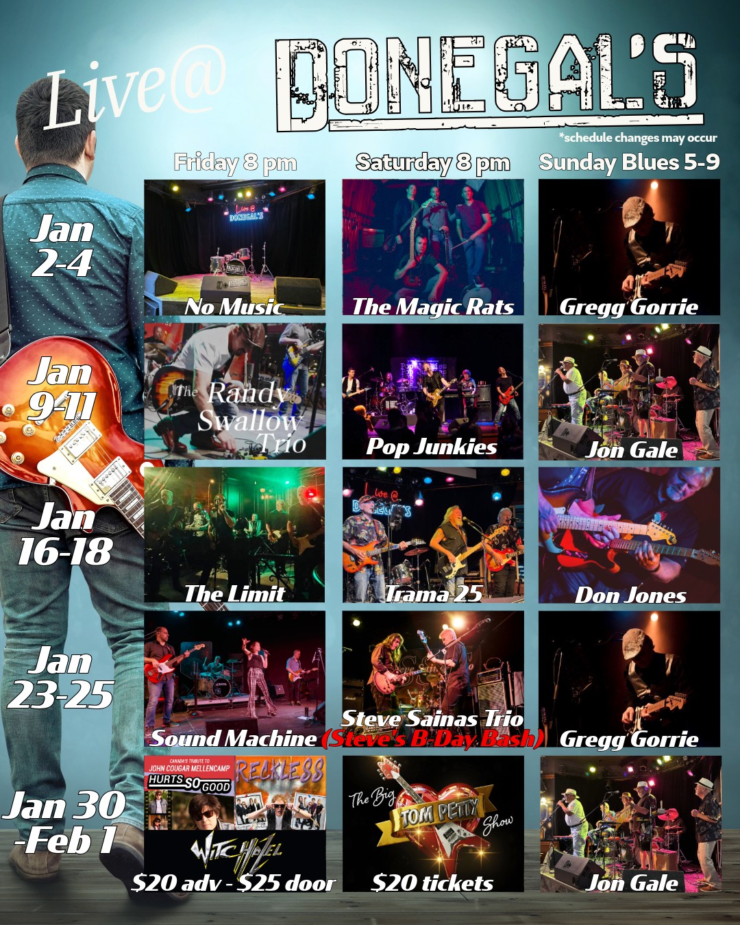 Weekly music listings updated Wednesday