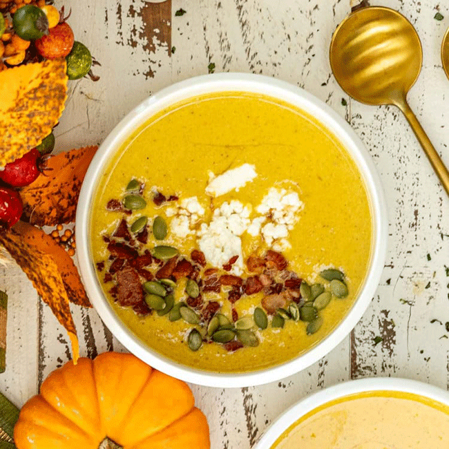 Use an immersion blender to puree the soup on high until creamy and smooth. Alternatively you can transfer the soup to a blender and puree it that way.