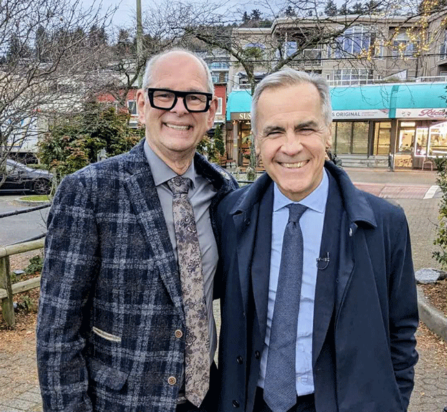 Prime Minister MARK CARNEY paid a visit to our City by the Sea yesterday. CARNEY and local MP ERNIE KLASSEN made the rounds locally stopping by White Rock city hall to visit Mayor KNIGHT then it was off to a local coffee shop to check in with the local Liberal Party Riding Members.