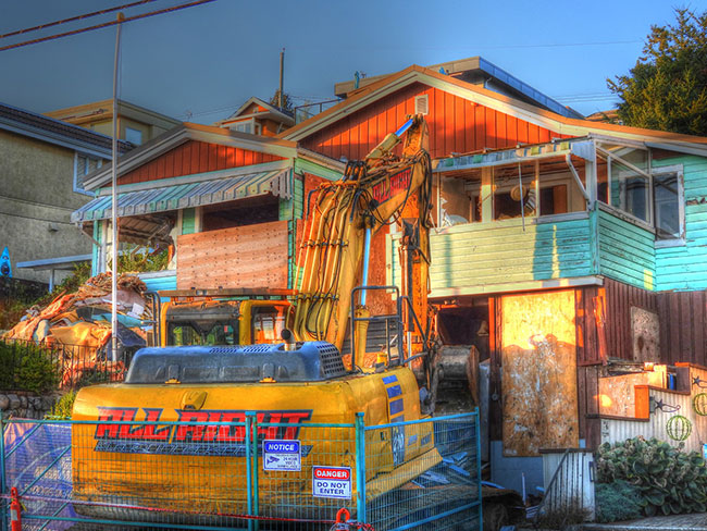 First thing this morning work crews rolled into town to dismantle and remove all vestiges of the Boathouse and The Surfside Grill.
