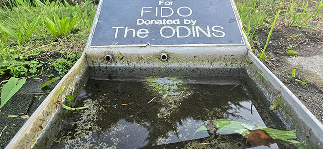 If you have ever walked along the waterfront sidewalk in White Rock that leads you from West Beach to East Beach you would have noticed the Fido water tray below.