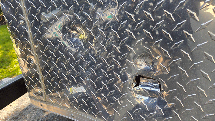 I am not the only one who has had issues with these non-signed speed humps.  I was at home one day when I heard a huge crash from near the school.  I quickly went to check it out as I suspected there had been a car accident at the corner.  Instead I got to watch as a truck with a boat on a trailer pulled up in front of our house with the boat nearly 45 degrees from level.  The driver was trying to get to the Crescent Beach marina and had not seen the speed hump, with it nearly throwing the boat off the trailer.  Last week the very same speed hump claimed another victim with a contractor buddy having his trailer pop off going over the speed hump at 50 km/h (school was not in session) and then slamming into his truck putting dents in the tailgate and bumper while the hitch punched a hole in the front of the trailer.  While his insurance will cover the damage to both his vehicle and trailer, I told him to take the City of Surrey to Small Claims Court for the cost of the deductibles, any damage to the equipment inside, plus vehicle rentals.