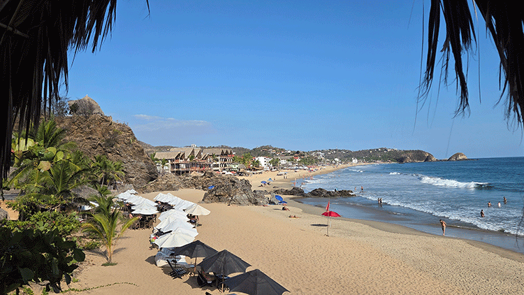 We watched all of this happen from a short distance away, praying for the man, the lifeguards working to save him and for his wife who stood there crying with her shaking hands balled in front of her tear strewn face. Within an hour an ambulance had taken the man away, the beach had cleared, and if you did not know what had happened everything looked normal with folks out strolling along the beach and a few people out in the water. A new friend we met from Saskatchewan told us this man was the fourth fatality in the past month and a half. What is interesting is that a Google search for drowning deaths at Zipolite beach turned up nothing during this time. The news does not get reported or translated into English and unless you are in town, there is no way to know about the body count. The Vagabond Journey website warns that Zipolite is one of the most dangerous beaches in the world but you still see people regularly in the water. Here in the Semi-pen, we have a sheltered bay with shallow water, long level sand flats and placid waves where drowning is an extremely rare occurrence.
