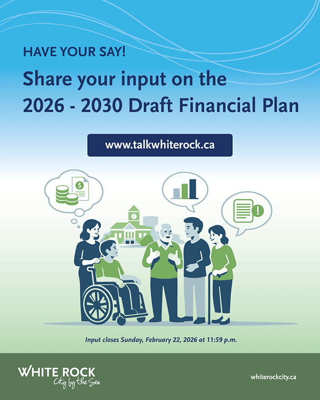 The Draft 2026–2030 Financial Plan is open for public feedback. It focuses on community priorities, services, infrastructure, housing, and the waterfront.