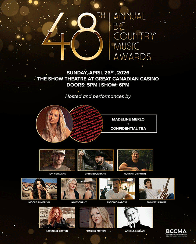 The countdown is on! Join us for an unforgettable evening celebrating the incredible talent and community that make up BC’s thriving country music scene.