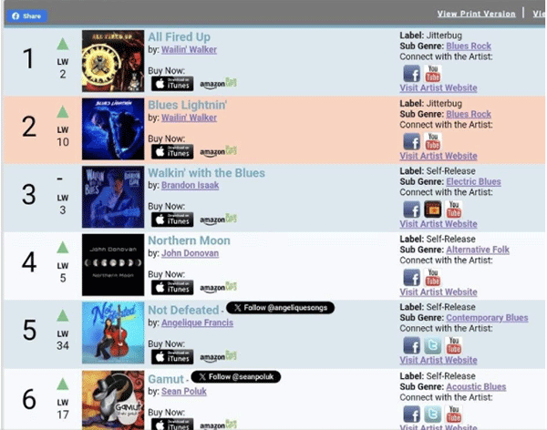 This is an absolutely monstrous achievement especially when you realize that All Fired Up was released in the fall of 2024 and has been on the music charts ever since. To have both of these albums hit #1 & #2 at the same time is almost unheard of since the Beatles did it regularly in the 1960s. Kudos to Al Walker for becoming an overnight sensation 50 years in the making. Besides a great voice and wicked guitar licks, Al has surrounded himself with talented band mates who together create great rock n roll and blues music. You can download his latest two albums from Spotify plus see his videos on YouTube. Join the Wailin' Walker FB page to stay up to date with the band that I hear through the White Rock music grape vine is already back in the studio working on more new music. I have put links to the band's web page plus Facebook site below.