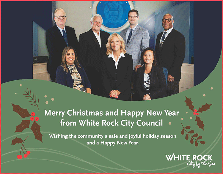 White Rock City Hall will close at 3 p.m. on Wednesday, Dec. 24 and will remain closed from Thursday, Dec. 25 to Jan. 1, reopening on Friday, Jan. 2, 2026 at 8:30 a.m.