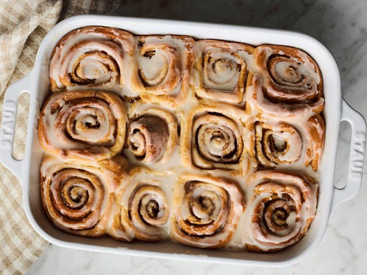 Make the glaze: In a medium bowl, whisk together the powdered sugar, 3 tablespoons milk, and vanilla until smooth. If it’s too thick, add more milk. Alternatively, make this cream cheese frosting recipe instead of the glaze.