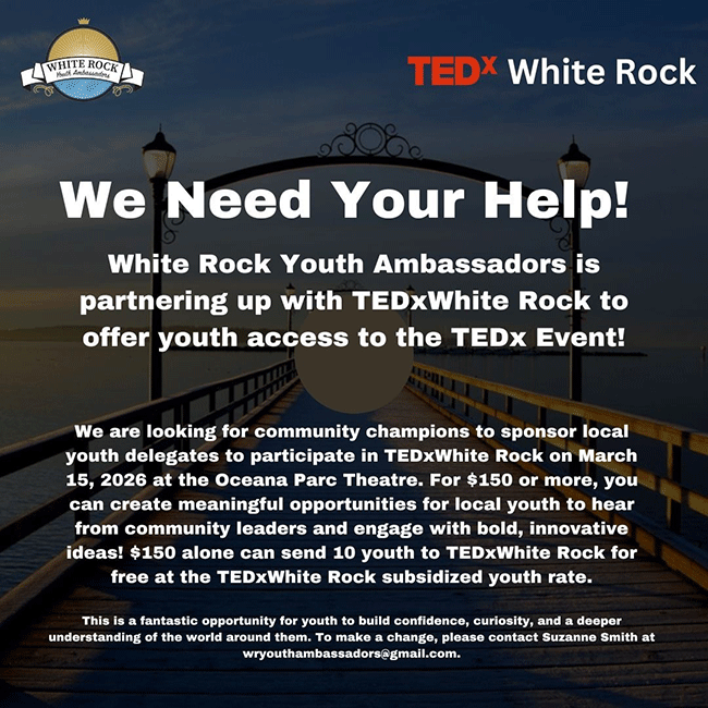 We’re partnering with TedxWhite Rock to engage and inspire the next generation of White Rock South Surrey.